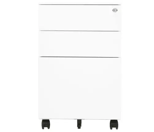 Kontorikapp on valmistatud terasest, muutes selle vastupidavaks ja kergesti puhastatavaks. 3 sahtli ja lukuga failikapp võimaldab teil faile kenasti erinevatesse kategooriatesse sortida ja faile turvaliselt hoida. Iga sahtel on varustatud 1 eemaldatava riputuslatiga, mida saab vabalt kombineerida kirja suuruse, ametliku dokumendi suuruse ja A4 rippuva failikausta hoidmiseks. Mobiilsel kapil on pliiatsialus, mis muudab teie töölaua korrastatumaks. 3 sektsiooniga kuullaagritega sahtlid tagavad sujuva avanemise ja sulgemise, isegi suurema koormuse korral saab neid sahtleid täielikult välja tõmmata.