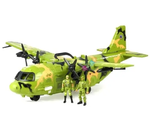 The presented military set is packed in a green, decorative cardboard box with a display window and a handle located in the upper part of the box, which makes the toy easy to carry. The plane and its crew are suitable for all children over the age of 3. The toy is CE certified, guaranteeing the comfort and safety derived from its use.