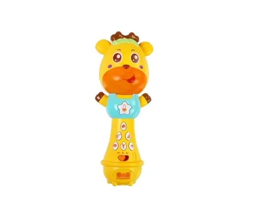 The microphone is powered by three 1.5V "AAA" batteries, which are not included in the set. The wheels contain six AG13 batteries. The toy is intended for children over 9 months of age. It has a CE certificate and complies with the EN 71 standard. It is packed in a cardboard box, making it an ideal gift for a baby.