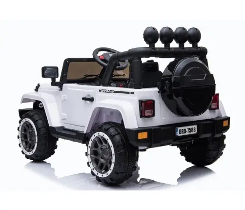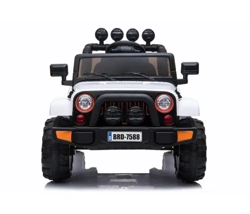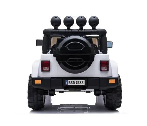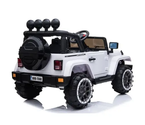 Dużym atutem białego modelu jeepa BRD-7588 jest ukryta pod spodem pojazdu rączka, ułatwiająca transport pojazdu w awaryjnej sytuacji, gdy na przykład rozładuje się akumulator, a także umieszczony w tylnej części pojazdu otwierany schowek w formie zapasowego koła. Dziecko będzie mogło przechowywać tam swoje niezbędne w podróży akcesoria.