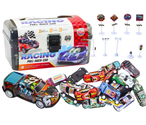 Set of springs in a suitcase, 25 pcs. Road signs, cars