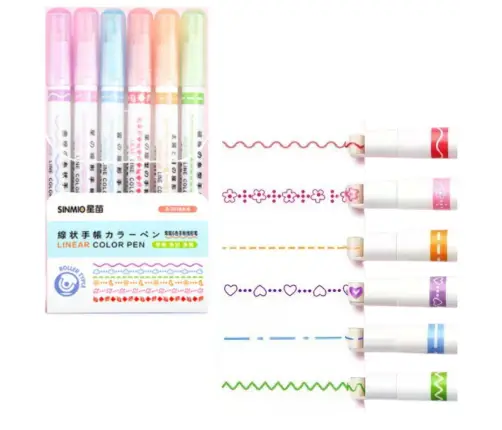 A set of 6 coloured markers is an excellent choice for all those who value creative work, creativity and the organisation of their notes. The markers offer intense colours and unique line patterns that make every drawing, decorating or creating projects unique and effective.