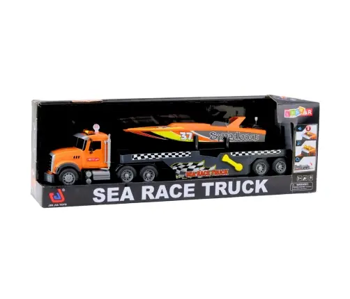 The Sea Race Truck is a unique set that transports children to the world of water racing and specialized transportation. A large truck with a trailer carries a sports motorboat, adding realism to the play and offering a wealth of possibilities for creating a variety of scenarios.
