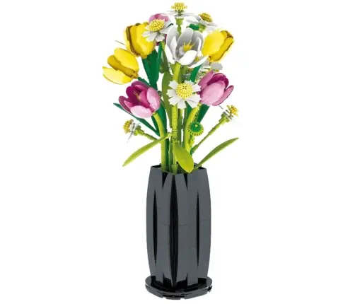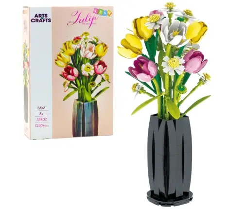 This elegant construction set allows you to create a unique bouquet of tulips in a vase using 1250 pieces. It's perfect for both children and adults who appreciate creative play, aesthetics, and durability. Once assembled, the set looks incredibly realistic – a perfect decoration for your home or office, or a unique gift for a loved one.