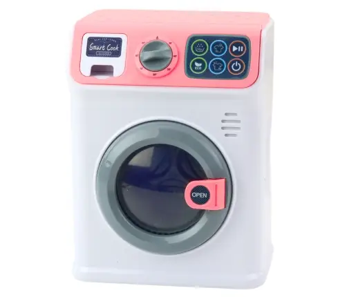 The toy is started with the ON/OFF button located on the touch panel. After selecting one of the available programs, the washing machine starts working - this is accompanied by the sound of pouring water, and the drum inside the device rotates like in a real washing machine. An additional advantage is the opening front drum and the pull-out detergent drawer, which allows the child to have even more realistic and engaging play.