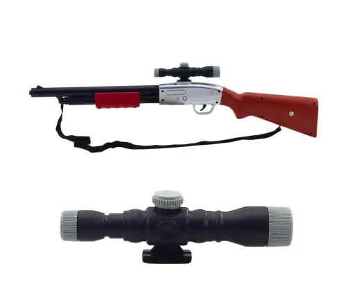 The model is equipped with a detachable scope, which gives it a professional look and allows for even greater immersion in play. The wood-like stock and metallic finishes make the toy look extremely impressive. Additionally, the included shoulder strap allows for comfortable carrying, which is great for dynamic play and staging.